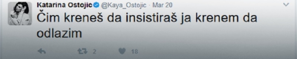 Naime, ona je napisala: “Čim kreneš da insistiraš, ja krenem da odlazim”.
