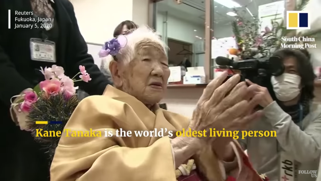 Kane Tanaka, 2019. godine i zvanično je proglašena za najstariju osobu na svetu na ceremoniji u staračkom domu u kojem živi u Fukuoki, u prisustvu članova porodice i gradonačelnika tog grada na jugozapadu Japana. Tada je imala 116. godina.