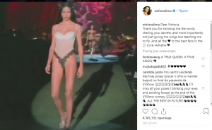 Ovogodišnja revija brenda Victoria’s Secret bila je poslednja za Adrianu Limu, potvrdila je brazilska lepotica potresnom porukom na socijalnoj mreži “Instagram”.