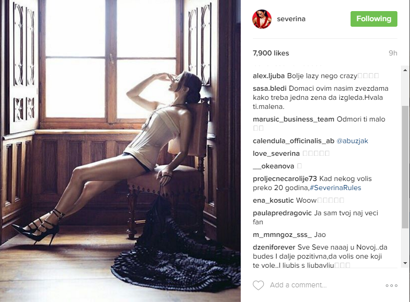 Od nje smo navikli na dobre pesme , pozitivnu energiju, seksi da meša kukovima ali i na to da zadaje domaće zadatke, jer fotka koju je Seve objavila na instagramu govori i više od reči. Na njoj se dobro vidi da Severina veoma drži do svog izgleda što je oduševilo pojedine njene fanove da su joj u komentarima ostavljali kako je mnogima zadala domaći zadatak.