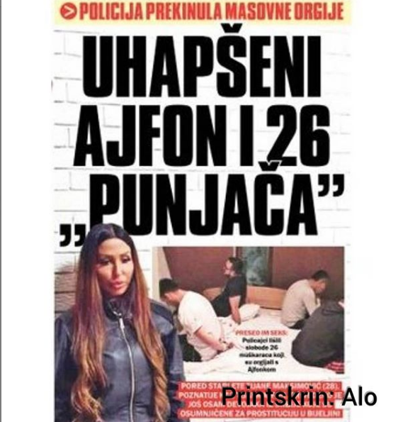 Bivša rijaliti učesnica i starleta Tijana Ajfon, uhapšena je zbog kako se navodi, sumnje da je jedan od organizatora orgijanja. Tim povodom društvene mreže su se usijale od fora akonto ove situacije. Dok je njoj seks došao glave, ljudi se ludo zabavljaju smišljajući razne anegdote.
