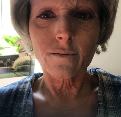 Na fotki je vidimo sa maskom koja podrazumeva velike bore na licu i starački vrat, jer je morala da se transformiše u staricu, na njeno veliko zadovoljstvo.